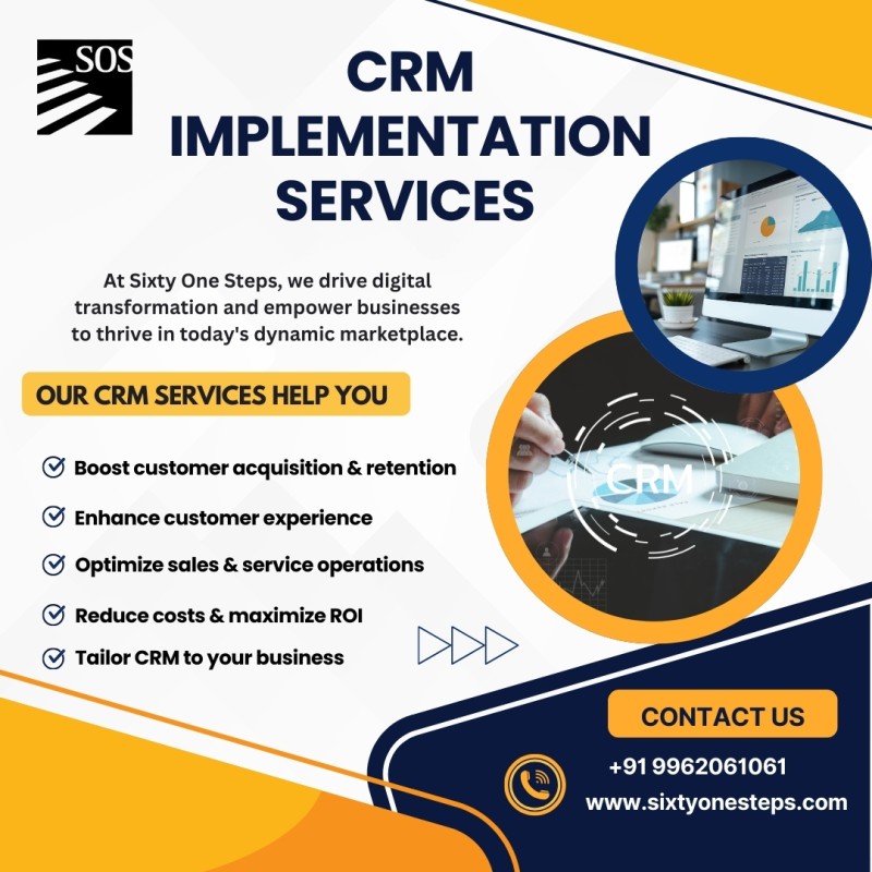 Sixty One Steps offers reliable and result-oriented CRM Implementation Services that help businesses organize customer data, automate sales processes, and improve customer engagement. With a strong focus on performance and usability, the company designs CRM solutions that align perfectly with business workflows and growth objectives.