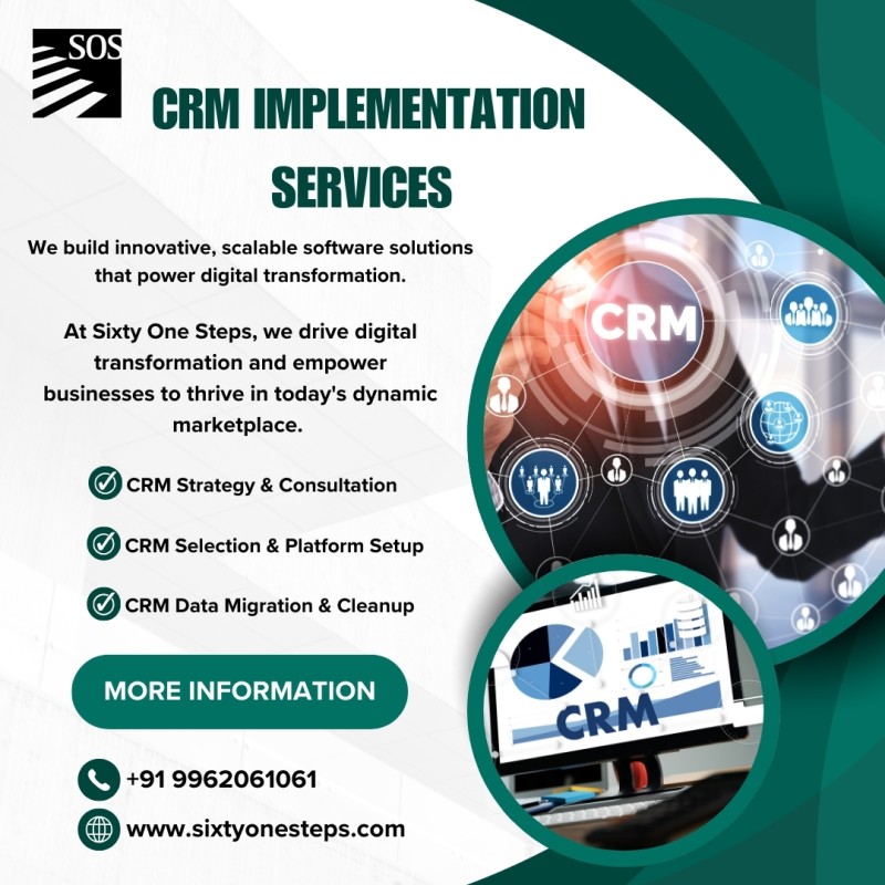 Looking for reliable CRM Implementation Services to improve customer management and business efficiency? Sixty One Steps provides customized CRM solutions that help organizations streamline sales, automate workflows, and improve customer engagement. From planning and deployment to user adoption and support, our experts deliver CRM systems tailored to business goals. Sixty One Steps helps businesses adopt scalable technology that improves performance and long-term growth.